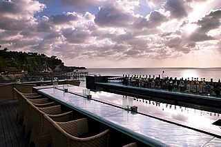 | 景観 | 海にせり出した断崖絶壁に建つバーから眺めるサンセットの光景は見事。サンセットの後はテーブルにキャンドルが灯され、一段とロマンチックな雰囲気に包まれます。 |