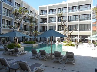 コの字になっている建物は大変すっきりしていて、敷地・メインプールともに広く、開放感抜群です。お部屋の内装は、バリっぽさはありませんが、モダンで清潔感があります。